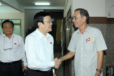 | Truong Tân Sang (1er plan, gauche) a rencontré le 5 décembre les électeurs du 4e arrondissement de Hô Chi Minh-Ville. |