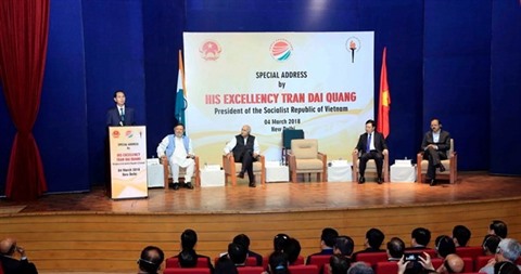 "Le Vietnam se félicite du fait que l’Inde continue de promouvoir son rôle important dans la région et soutient constamment la participation active de l’Inde aux mécanismes de connectivité et de coopération régionales", a déclaré le président Trân Dai Quang.