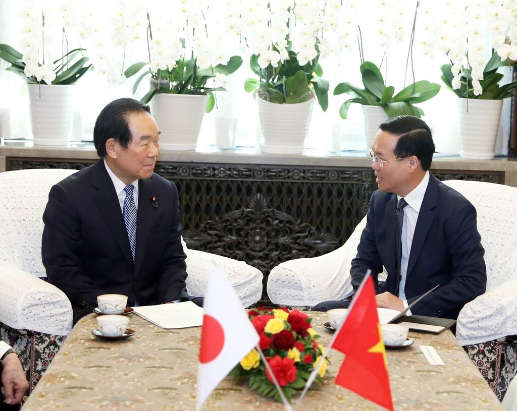 Auparavant, le président Vo Van Thuong avait eu des entretiens avec Nukaga Fukushiro et Otsuji Hidehisa, au cours desquels le dirigeant vietnamien a estimé que l'élévation des relations bilatérales au rang de partenariat stratégique intégral pour la paix et la prospérité en Asie et dans le monde reflétait clairement le développement fort, global et substantiel des relations Vietnam - Japon.
