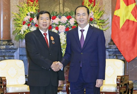 | Le président vietnamien Tran Dai Quang (droite) et le président de la Cour populaire suprême du Laos, Khamphansit Thidampha. |