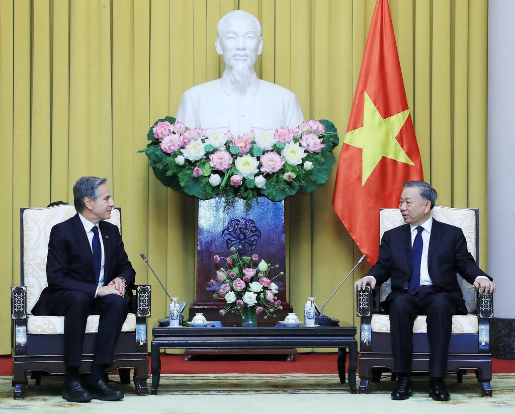 Le président Tô Lâm a transmis ses sincères remerciements au président Joe Biden pour ses bons sentiments et son message de profondes condoléances suite au décès du secrétaire général Nguyên Phu Trong et a remercié Antony Blinken pour être venu au Vietnam pour exprimer ses condoléances avec la famille du feu secrétaire général.