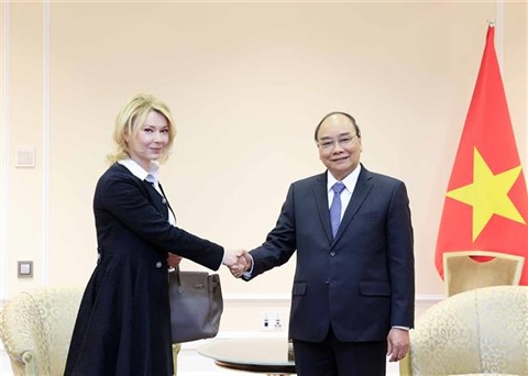 | Le président vietnamien Nguyên Xuân Phuc (droite) et la vice-présidente du comité de gestion de Gazprom, Elena Burmistrova, le 2 novembre en Russie. |