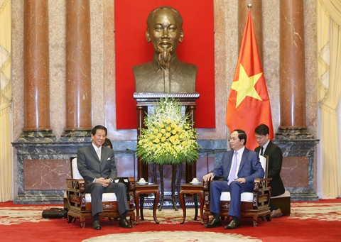 | Le président Trân Dai Quang (droite) a recu le 13 mai à Hanoi l'ambassadeur spécial Vietnam-Japon, Sugi Ryotaro. |