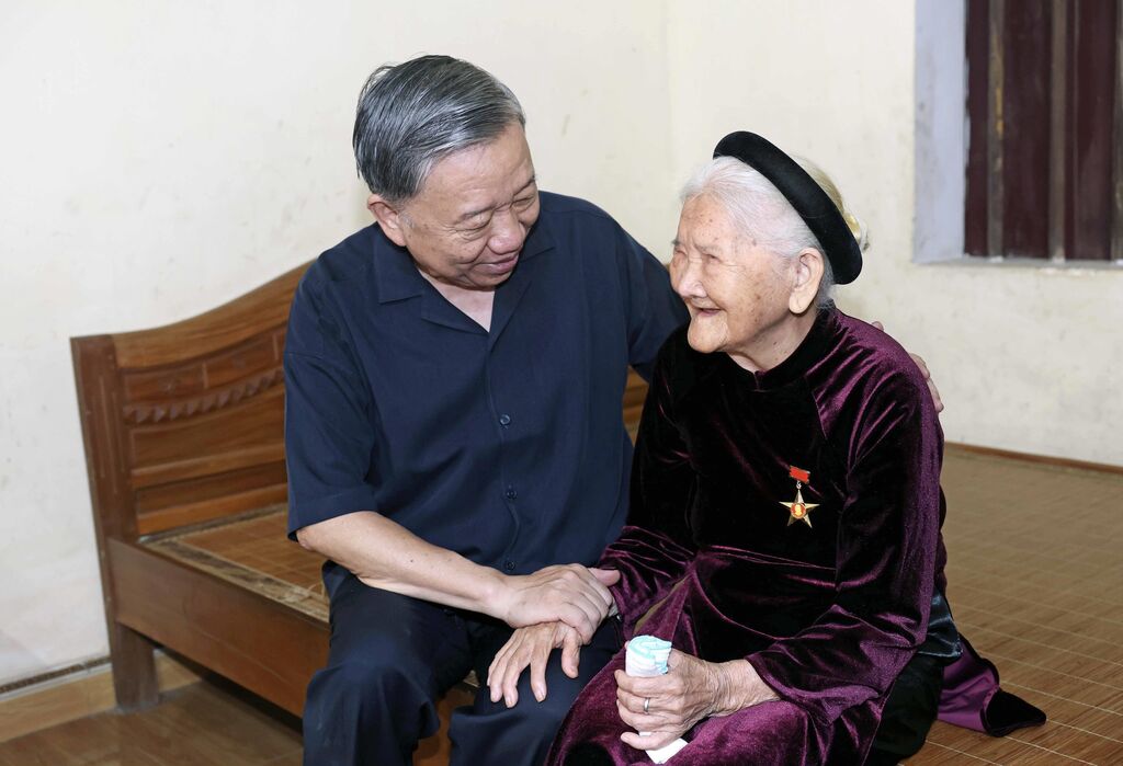 | Le président Tô Lâm et la Mère héroïque vietnamienne Nguyên Thi Cuoc, à Bac Ninh. |