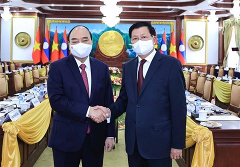 Ils ont convenu de continuer à bien mettre en œuvre les accords de haut niveau et les résultats obtenus lors de la 43e session du Comité intergouvernemental Vietnam - Laos, de mettre en œuvre efficacement l’accord de coopération bilatérale entre le Vietnam et le Laos pour la période 2021-2025, l’accord de coopération stratégique Vietnam - Laos pour la période 2021-2030, ainsi que les résultats obtenus lors de la récente visite officielle au Vietnam du secrétaire général et président Thongloun Sisoulith et de l’actuelle visite officielle au Laos du président Nguyên Xuân Phuc.