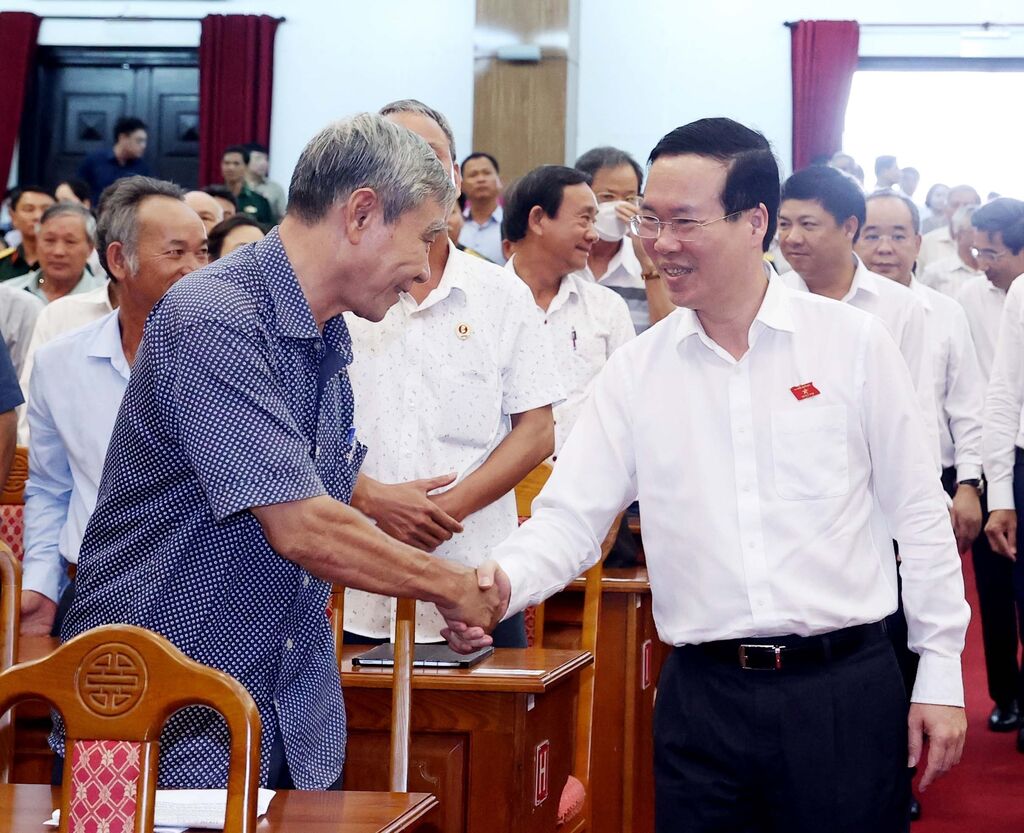 | Le président de la République Vo Van Thuong (droite) rencontre le 28 juin des électeurs de Dà Nang. |