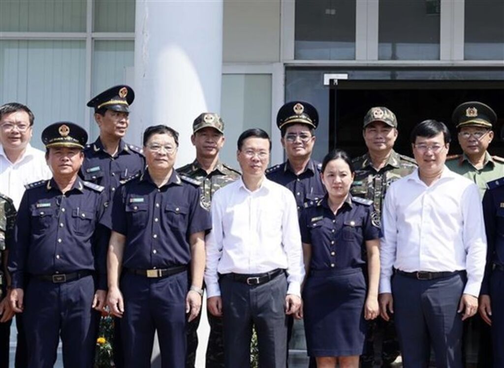 Le même jour, le président Vo Van Thuong a rendu visite au bataillon de police mobile de la province de Dông Thap, puis à l'office douanier de la porte-frontière internationale de Thuong Phuoc. Cette dernière est une porte-frontière fluviale internationale importante dans la région du delta du Mékong, facilitant les activités commerciales entre le Vietnam et le Cambodge.