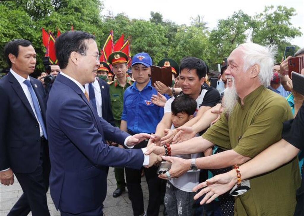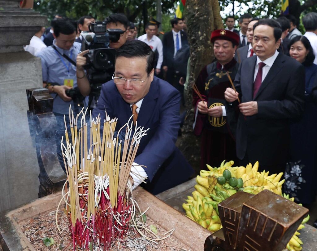Lors de la cérémonie, le président Vo Van Thuong et les délégués des ressorts central et local ont déposé des fleurs et offert de l’encens aux rois Hùng. Ils sont ensuite allés fleurir le relief décrivant la rencontre entre le Président Hô Chi Minh et des cadres et soldats locaux le 19 septembre 1954.