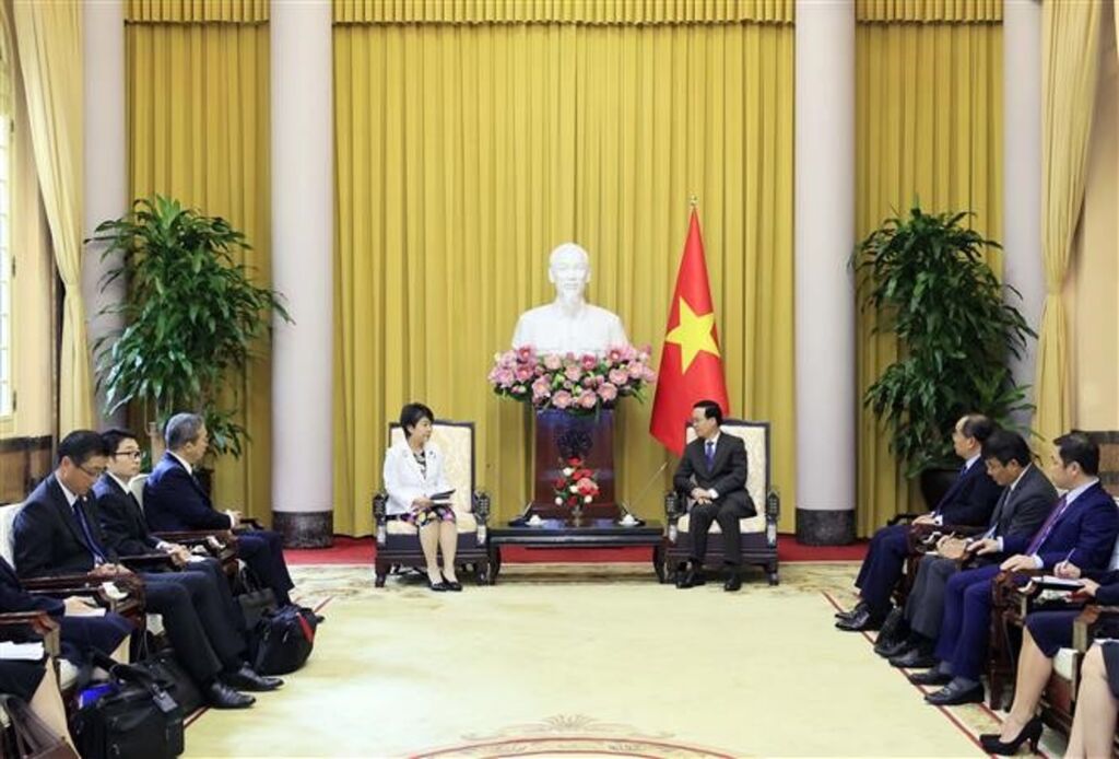 | Le président vietnamien Vo Van Thuong reçoit la ministre japonaise des Affaires étrangères Kamikawa Yoko, le 10 octobre. |