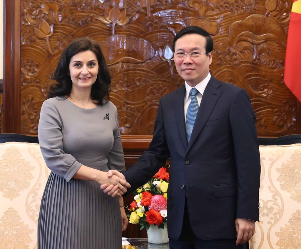 | Entretien entre le président Vo Van Thuong et Marinela Petkova, ambassadrice de Bulgarie, le 9 juin à Hanoï. |