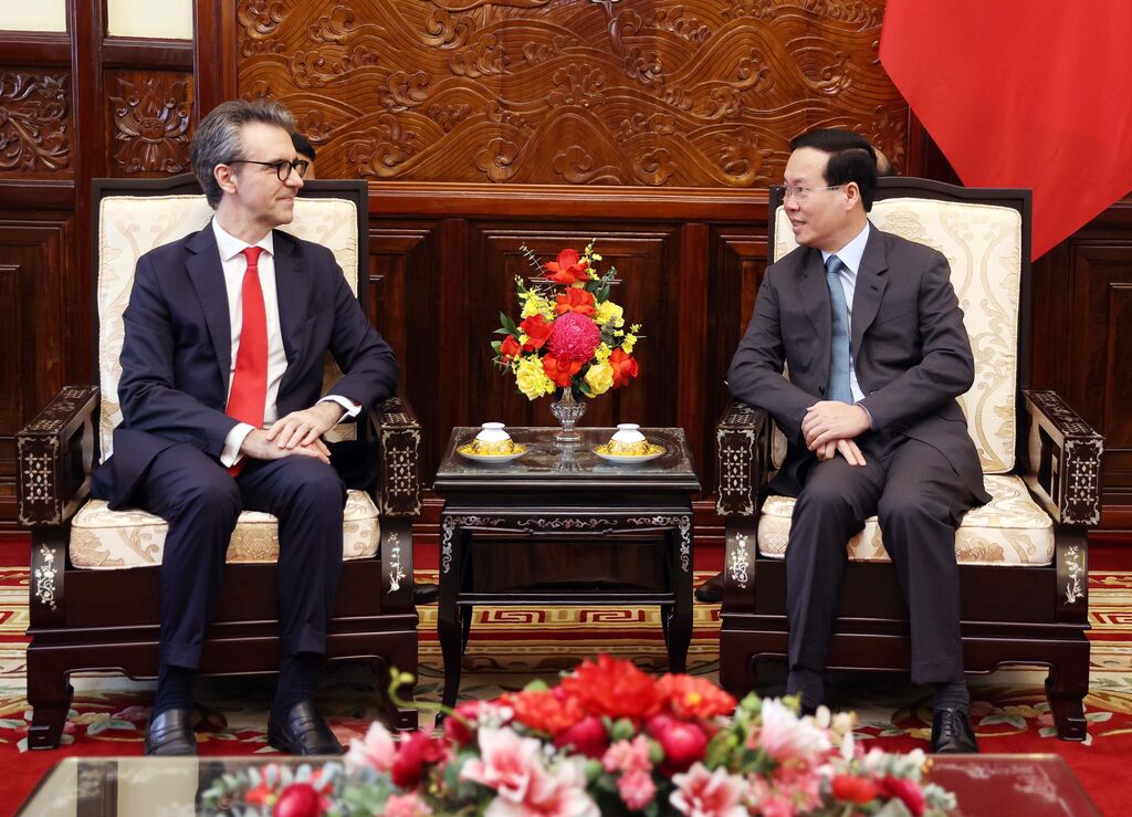 | Le président de la République vietnamien Vo Van Thuong a reçu, lundi 3 juillet à Hanoï, l’ambassadeur Giorgio Aliberti, chef de la Délégation de l’UE au Vietnam. |