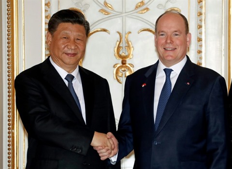| Le souverain monégasque Albert II (droite) accueille le président chinois Xi Jinping à Monaco le 24 mars. |