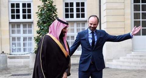 | Le prince héritier saoudien Mohammed ben Salmane (gauche) est accueilli par le Premier ministre français Edouard Philippe, le 9 avril à Paris. |