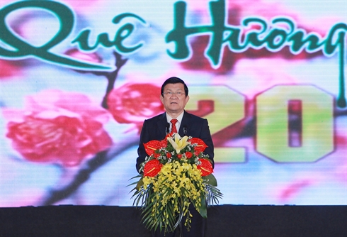 | Le président de la République, Truong Tân Sang, au programme "Printemps au pays natal 2014", le 23 janvier à Hanoi. Photo : Lâm Khanh/VNA/CVN |