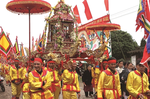 | La fête du Temple des rois fondateurs Hùng, au 10e jour du 3e mois lunaire, attire chaque année le plus des visiteurs. |