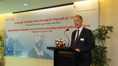 Prenant la parole lors de la cérémonie de remise du prix, Othmar Hardegger, consul général de Suisse à Hô Chi Minh –Ville, a déclaré: "Le prix Alexandre Yersin pour les recherches médicales des Vietnamiens est un grand honneur puisqu’il porte le nom d’Alexandre Yersin, un scientifique suisse qui a contribué au développement de la médecine vietnamienne et même mondiale". M. Othmar Hardegger a espéré que ce prix serait non seulement un honneur pour les chercheurs du Vietnam récompensés aujourd'hui mais aussi qu’il donnera l'impulsion pour d’autres travaux scientifiques de valeur au Vietnam dans le futur.