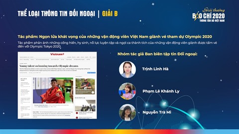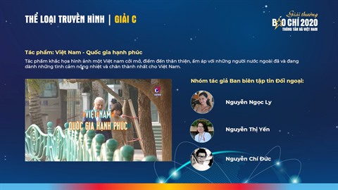 Le jury a travaillé de manière sérieuse et responsable, sélectionnant 69 meilleures œuvres des auteurs et groupes d'auteurs dans 7 formes de presse. Le groupe de quatre journalistes du Courrier du Vietnam (Nguyên Thanh Nga, Bùi Thi Phuong, Nguyên Ngân Huong et Trân Van Truong) a gagné l'unique prix A dans la catégorie "Information pour l'étranger" avec une série d'articles sur l'Accord de libre-échange et celui de protection des investissements entre le Vietnam et l'Union européenne (EVFTA et EVIPA en abréviations anglaises).