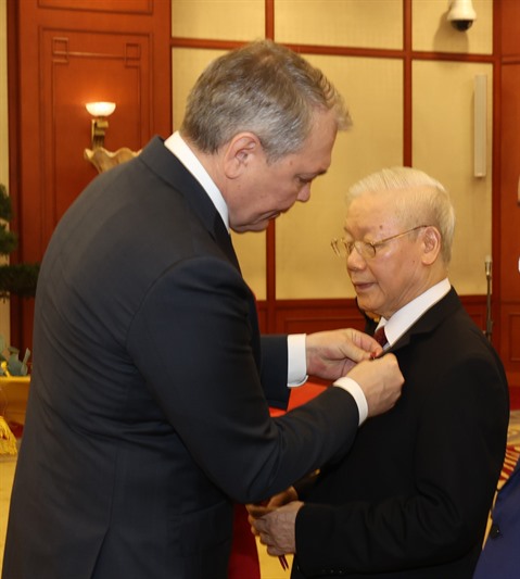 Le vice-président du PCFR, Leonid Kalashnikov, a affirmé que cette distinction exprimait la reconnaissance envers les grandes contributions du secrétaire général du PCV, un activiste politique très apprécié en Russie et dans le monde et ses efforts incessants afin de consolider l'amitié Vietnam-Russie. Le succès du Vietnam était une preuve éclatante de la réalisation du socialisme.