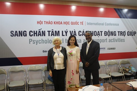 | Le Professeur associé et Docteur Bùi Thi Hông Thai (centre) lors d'un colloque sur la psychologie, à Hanoï. |