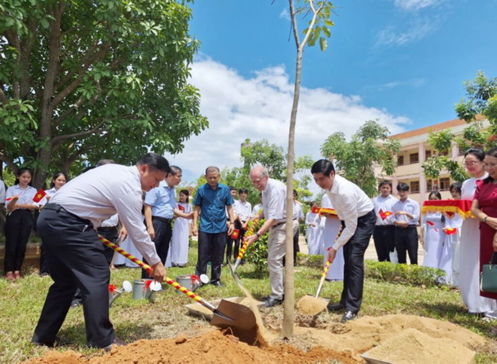 Dans la même matinée, le lauréat du prix Nobel de physique 1999 s'est rendu et a planté un arbre du souvenir au lycée Chu Van An de Hoài Nhon et a visité le siège du Comité populaire de ce district.