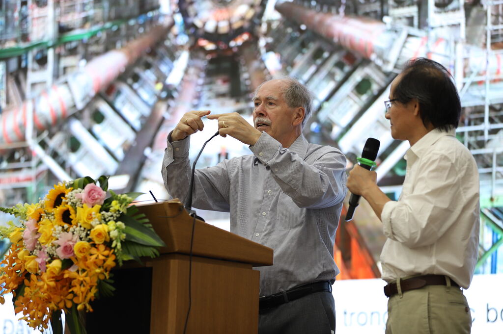| Conférence publique du Professeur Gerardus't Hooft à l'Université de Dà Nang, le 3 août dernier. |