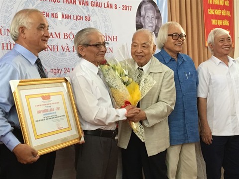 | Le Professeur Phan Huy Lê (2e à gauche) lors de la cérémonie de remise du prix Trân Văn Giàu, le 24 août à Hô Chi Minh-Ville. |