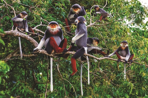 | Des Doucs à pattes rousses dans la péninsule de Son Trà, à Dà Nang (Centre). |