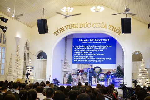 Nous nous trouvons dans l’Église chrétienne évangélique (ECE) de Hanoï, au 2 rue Ngo Tram, vers 09h00 dimanche 2 décembre 2018. Ici se trouve le siège social de l’ECE du Nord du Vietnam. Tout le monde attend la 2e session de la grande prière de la semaine avec solennité. La grande salle est décorée de manière simple mais élégante. Sur le podium, les choristes entonnent les cantiques, le pasteur Hô Xuân Phu, venu de Californie, aux États-Unis, parle des leçons de vie issues de la Bible et de l’Évangile, tandis que les croyants se recueillent.