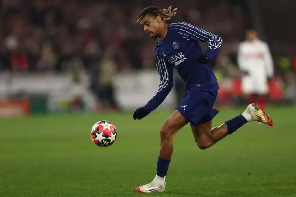 | Bradley Barcola lors de la rencontre de Ligue des champions face à Stuttgart, le 29 janvier 2025. |