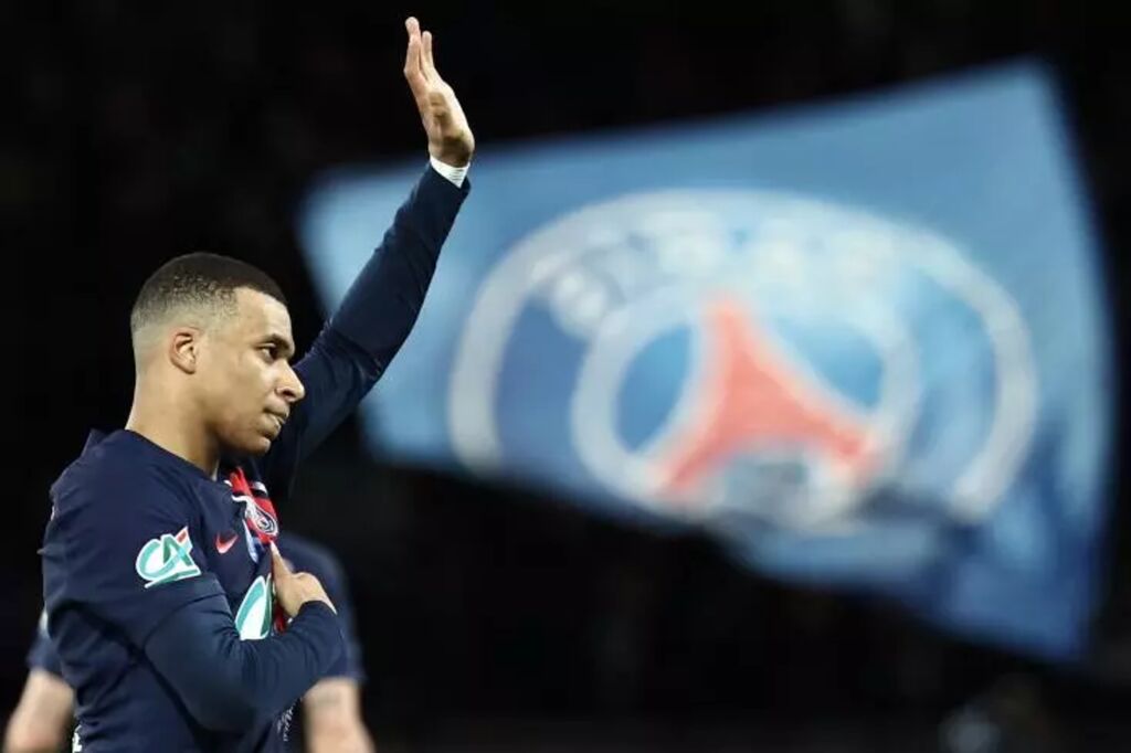 | Kylian Mbappé fête son but qui permet au PSG de se qualifier pour la finale de la Coupe de France lors du match contre Rennes, le 3 avril. |