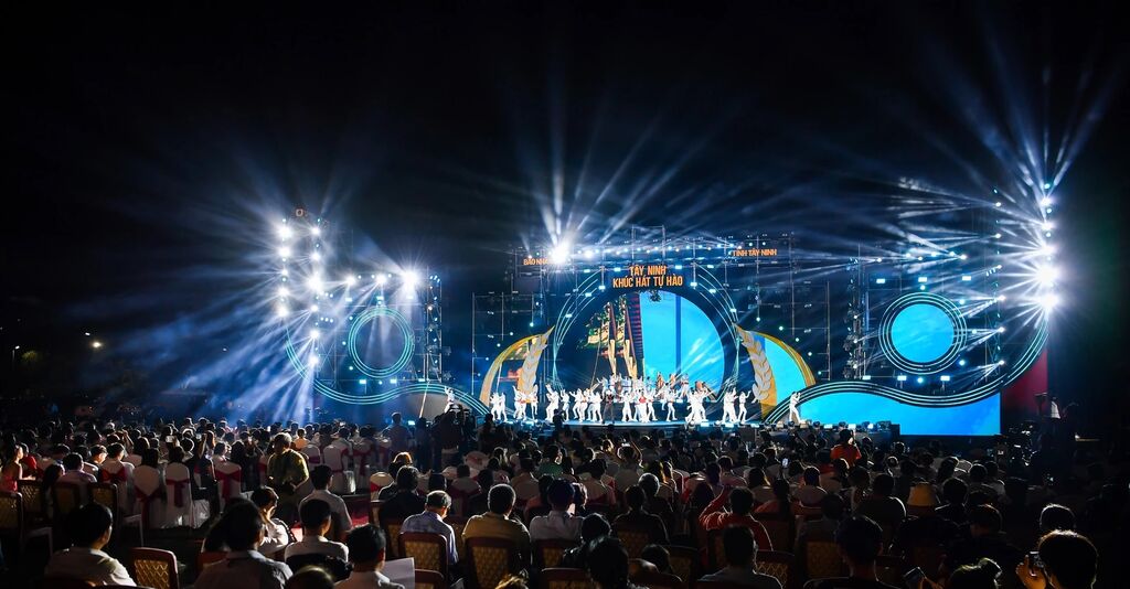 | Le soir du 30 mars, à la Place de la Zone touristique de la montagne Bà Den (Tây Ninh), a eu lieu le programme d'art politique "Tây Ninh - Khúc hát tự hào" (Tây Ninh - Chant de fierté). |