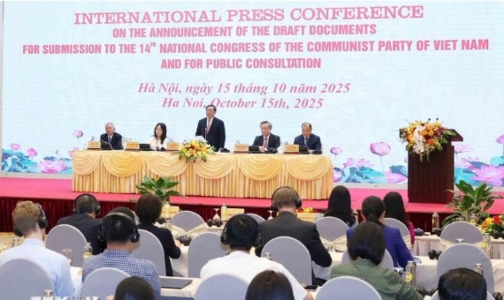 | Conférence de presse internationale sur les projets de documents à soumettre au XIVe Congrès national du Parti pour recueillir l'opinion publique, le 15 octobre. |