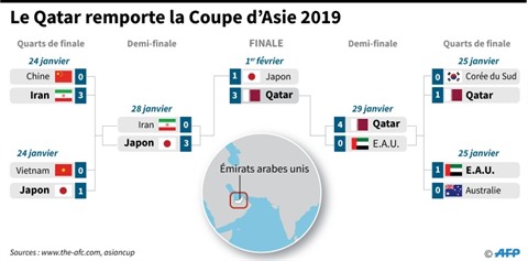 Les Japonais, quadruples champions d'Asie et donnés favoris, ont repris espoir après la pause grâce à Takumi Minamino (69e). Mais Akram Afif a clos les débats sur pénalty à dix minutes de la fin, après l'intervention de l'assistance vidéo.