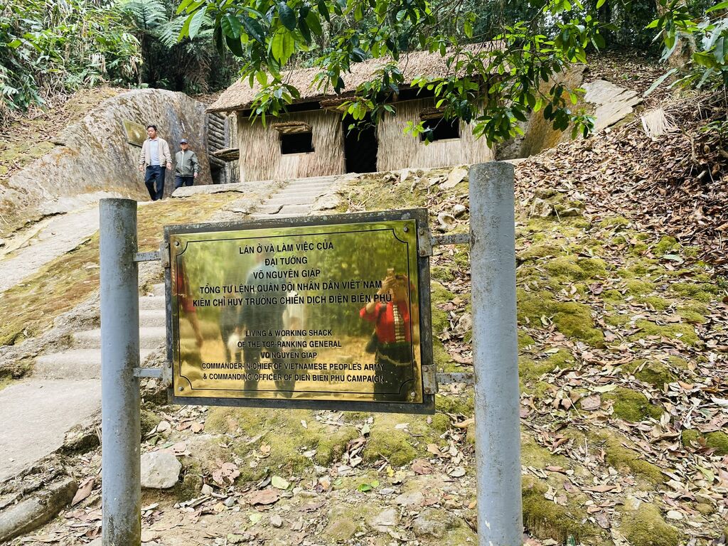 À côté du lieu de travail et de repos du Général Giáp se trouve un abri creusé dans la montagne. Pendant les périodes d'intenses bombardements français, le commandant en chef de la campagne travaillait dans ce bunker.