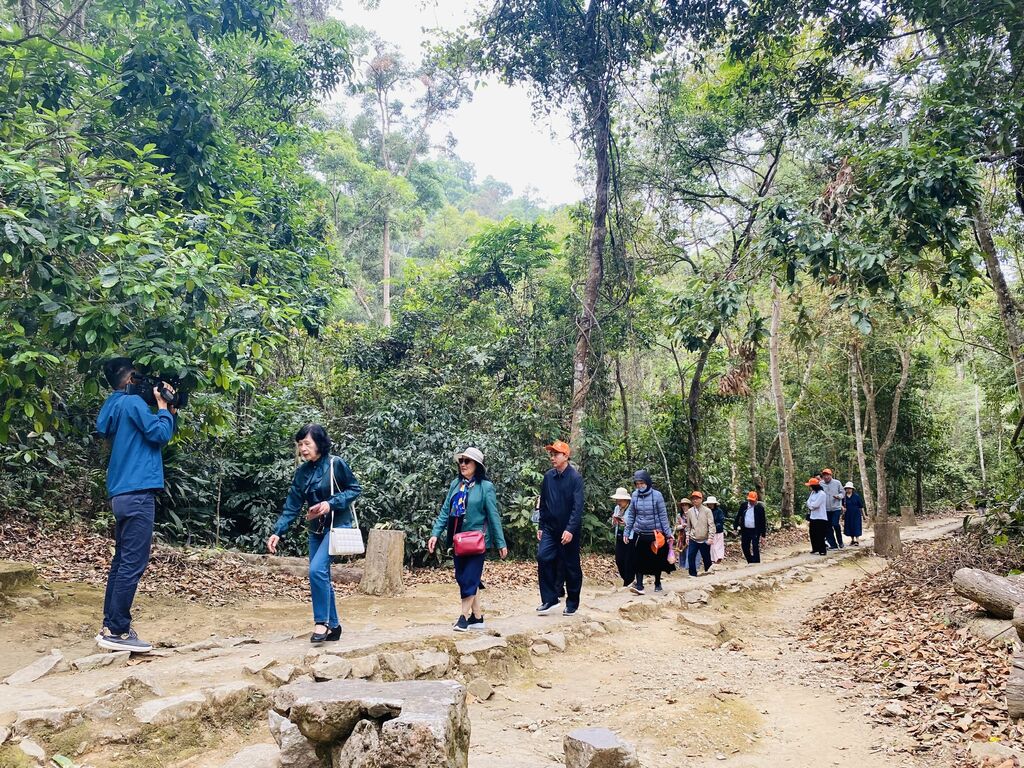 | Touristes visitant le QG de la campagne de Điên Biên Phu dans la forêt de Muong Phang, province de Điên Biên (Nord). |
