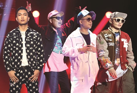 | Les membres du jury de "King of rap", une émission de rap sur la télévision nationale. Photo : KOR/CVN |