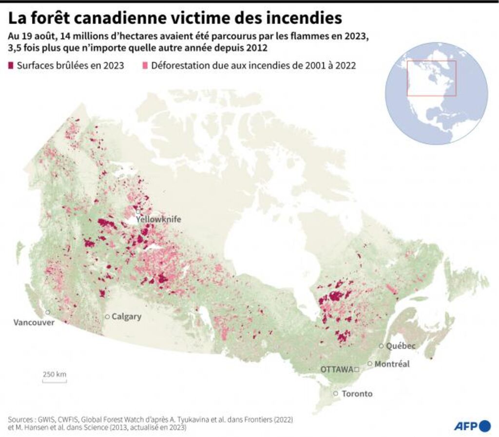 "Le terme +sans précédent+ ne rend pas justice à la gravité des incendies de forêt qui ont ravagé le Canada cette année", a souligné Yan Boulanger. D'un point de vue scientifique, le doublement du précédent record de superficie brûlée est tout simplement incroyable".