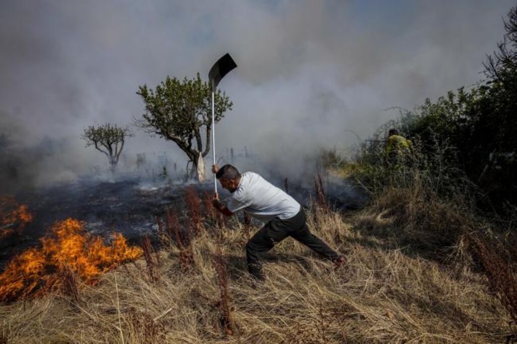 | Un habitant cherche à éteindre les incendies en ville de Tabara, en Espagne, le 19 juillet 2022. |