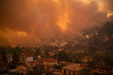Les feux de forêt continuaient le 8 août de ravager l'île grecque d'Eubée, en proie aux incendies depuis six jours. Photo : AFP/VNA/CVN |