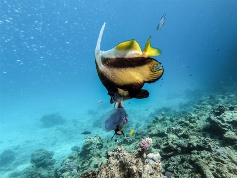 | Photo prise le 4 avril montrant des poissons au large de la cité balnéaire de Hourghada dans l'est de l'Égypte. |