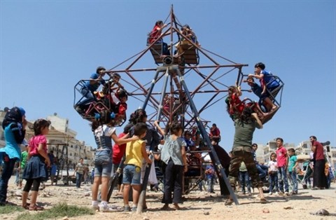 | Des enfants jouent dans un parc à Idlib en Syrie, le 6 juillet. |