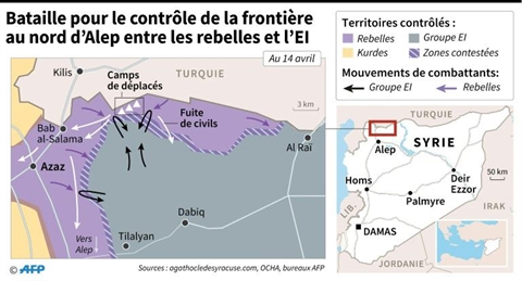 | Bataille pour le contrôle de la frontière au nord d'Alep entre rebelles et EI |