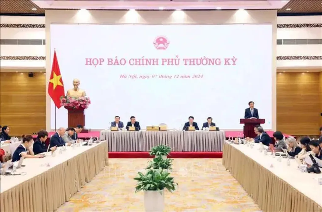 | Panorama de la conférence de presse régulière du gouvernement, le 7 décembre à Hanoï. |