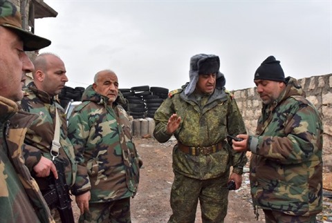 | Un général des forces gouvernementales syriennes s'entretient avec ses troupes dans le district Sheikh Saeed d'Alep, le 30 novembre 2016 |