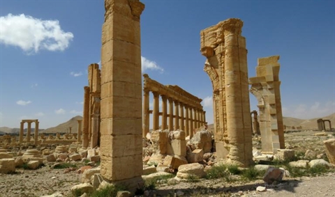 | Vue général des restes de l'Arc de Triomphe dans la cité syrienne de Palmyre, le 27 mars. |