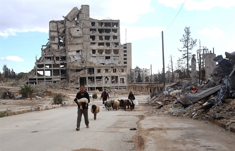 | Des bergers syriens marchent dans la partie d'Alep contrôlée par le gouvernement, le 3 décembre 2016. Photo : AFP/VNA/CVN |