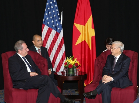 | Le chef du PCV, Nguyên Phu Trong (droite), reçoit le représentant américain au commerce, Micheal Froman, le 6 juillet à Washington. |