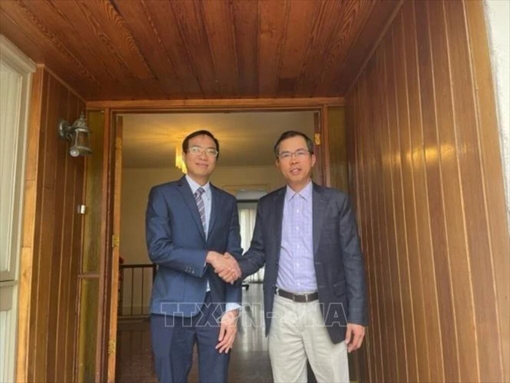 | L'ambassadeur du Vietnam en Australie, Pham Hung Tam (à droite), et le président du Réseau d'innovation Vietnam - Australie (NIC AU), le Dr. Tran Phi Vu, au siège de l'ambassade à Canberra le 31 octobre. |