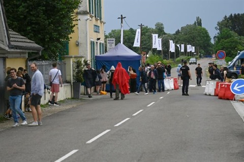 Dès la fin d'après-midi, de violentes bourrasques ont balayé la presqu'île du Malsaucy et deux averses très soutenues se sont abattues sur le site alors que les premiers spectateurs commençaient tout juste à arriver, a constaté un journaliste de l'AFP.