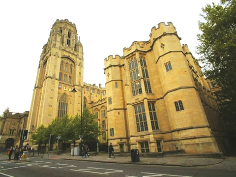 | Le "Wills Memorial Building", faisant partie de l’Université de Bristol, en Grande-Bretagne. |